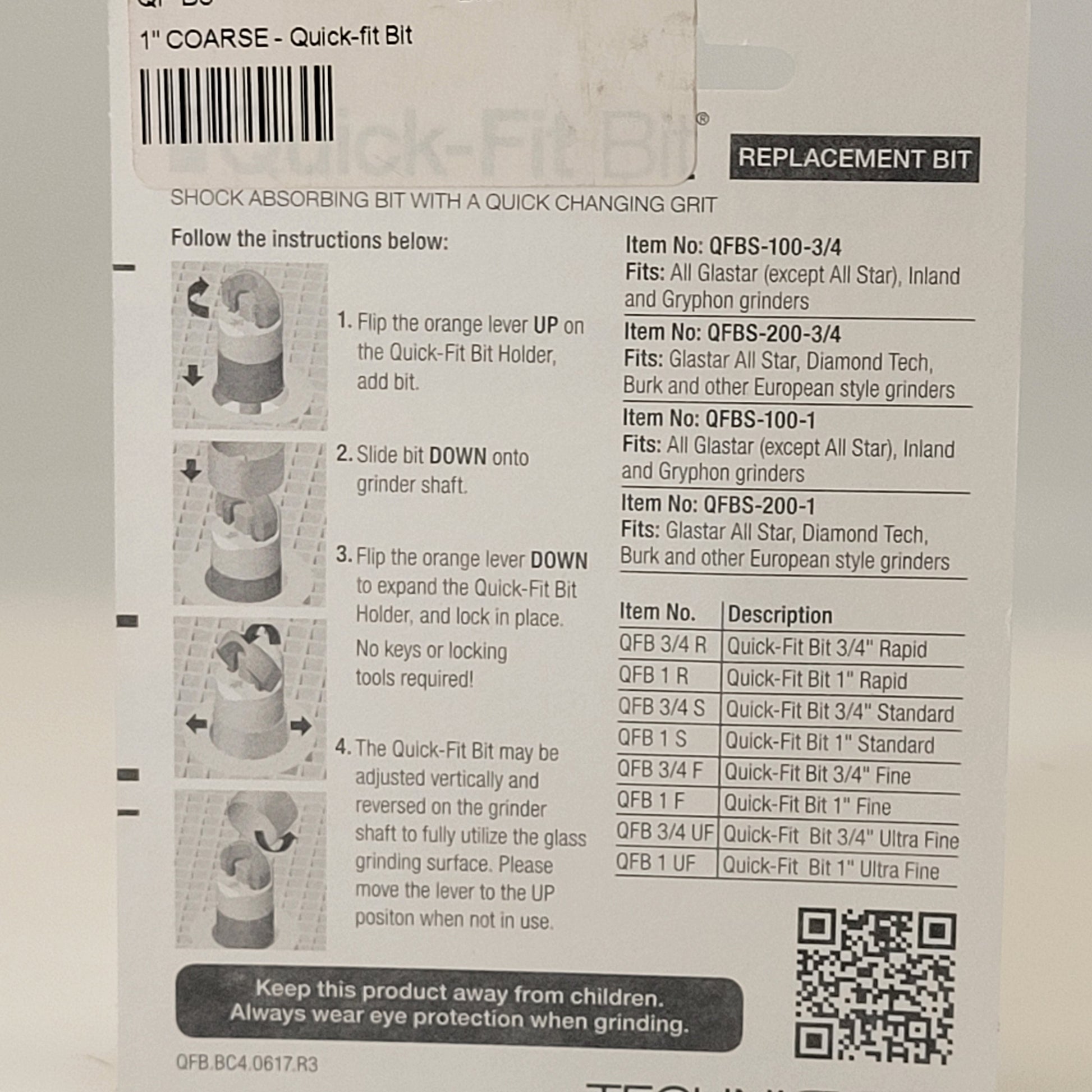 - Tags: 1, Coarse grit, Glass grinders and bits, Glastar, Grinder bit, Grinding, Grinding tools, Grit, Gryphon, Inch, Inland, Quick fit, Sleeve