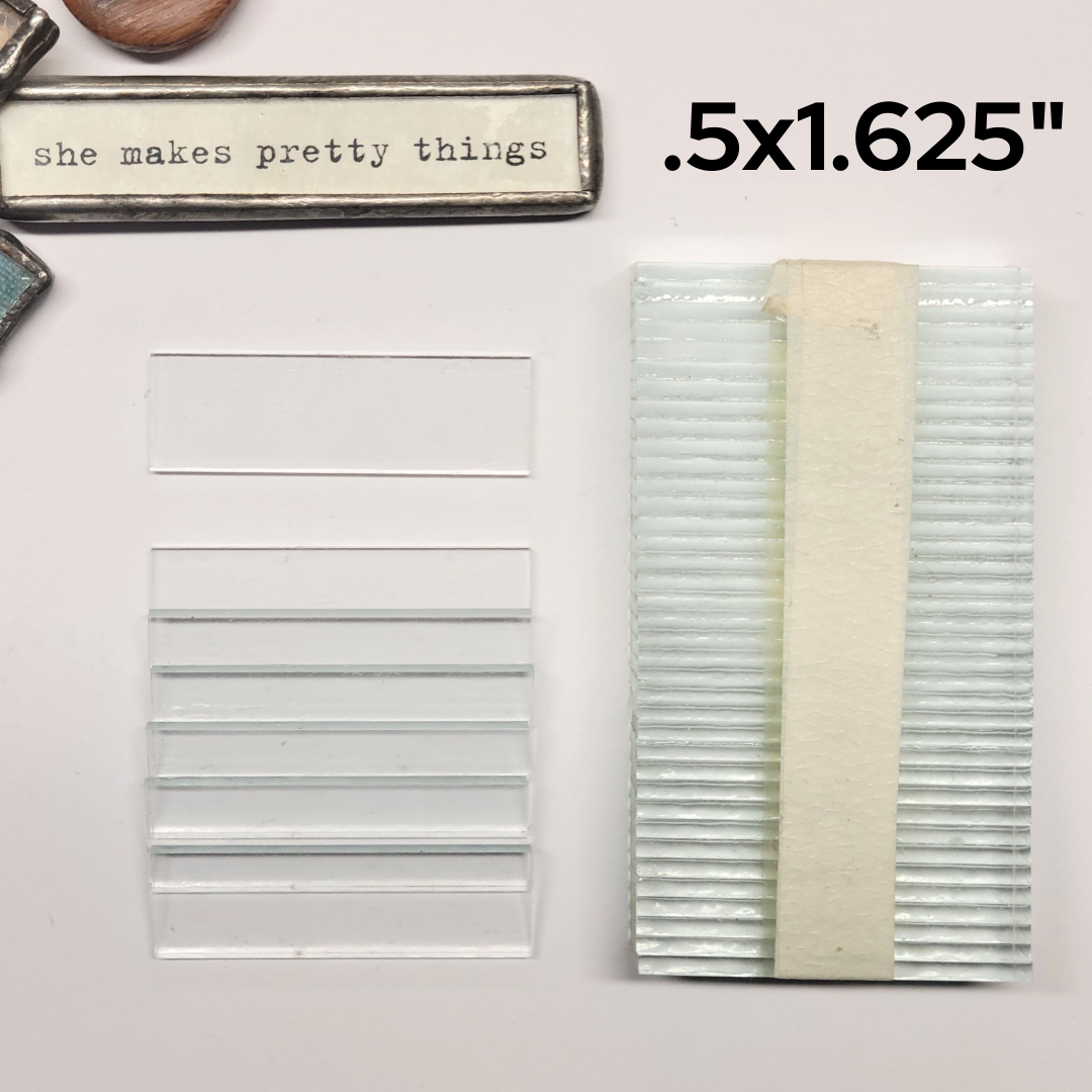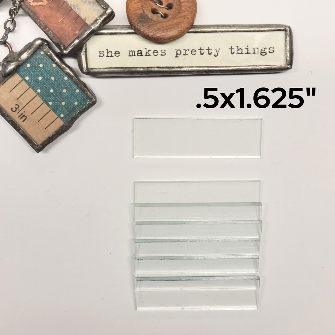 Discover our versatile .5 x 1.625 Inch Flat Glass Rectangles, perfect for a wide range of crafting projects. Sandwich pictures, cloth, flower petals, text/words/names, and more in between 2 pieces of glass. Make your own Assemblage jewelry or soldered art pendants. Crafted with precision, these clear glass rectangles are flat on both sides, making them ideal for various techniques.