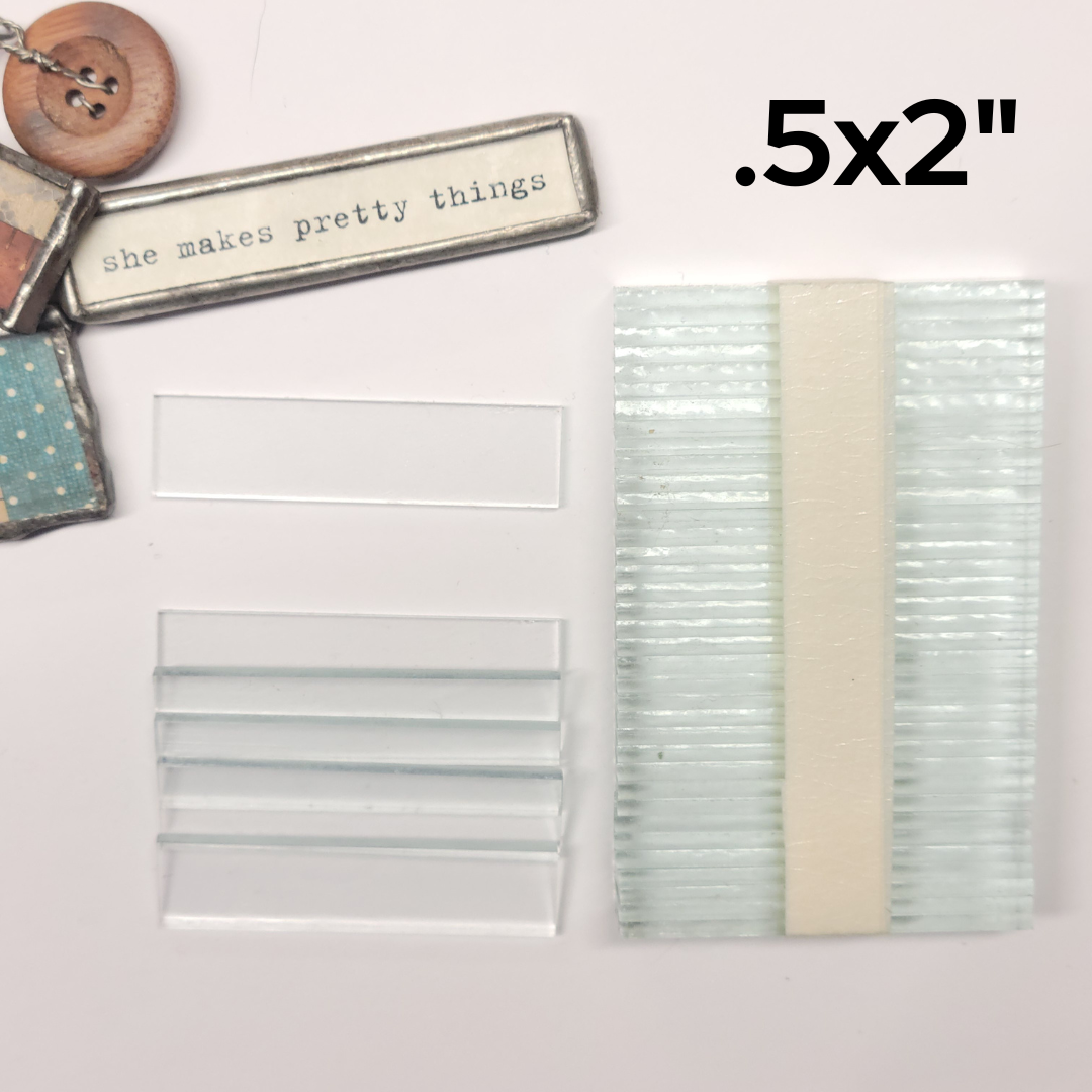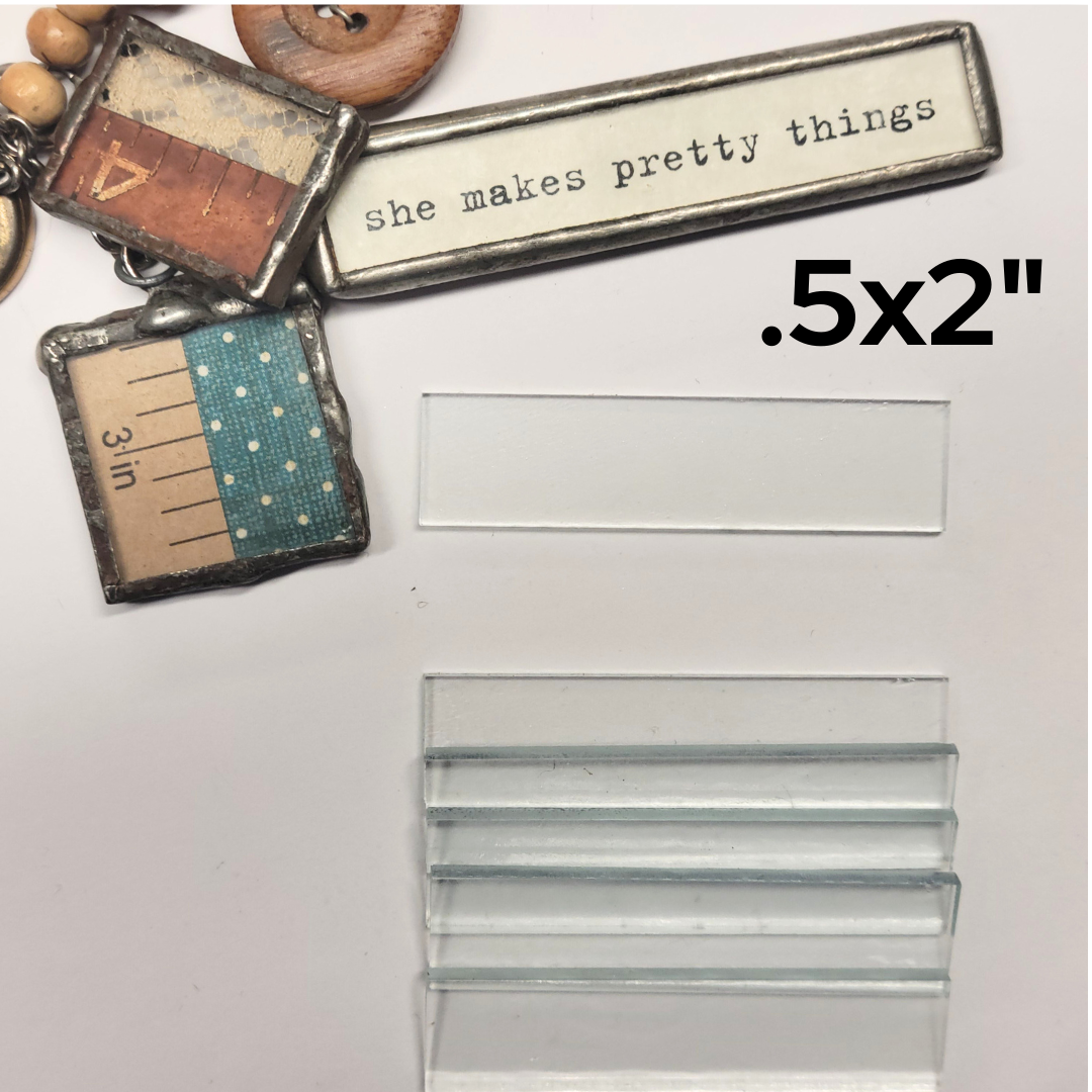 Discover our versatile .5 x 2 Inch Flat Glass Rectangles, perfect for a wide range of crafting projects. Sandwich pictures, cloth, flower petals, text/words/names, and more in between 2 pieces of glass. Make your own Assemblage jewelry or soldered art pendants. Crafted with precision, these clear glass rectangles are flat on both sides, making them ideal for various techniques.Product Details: