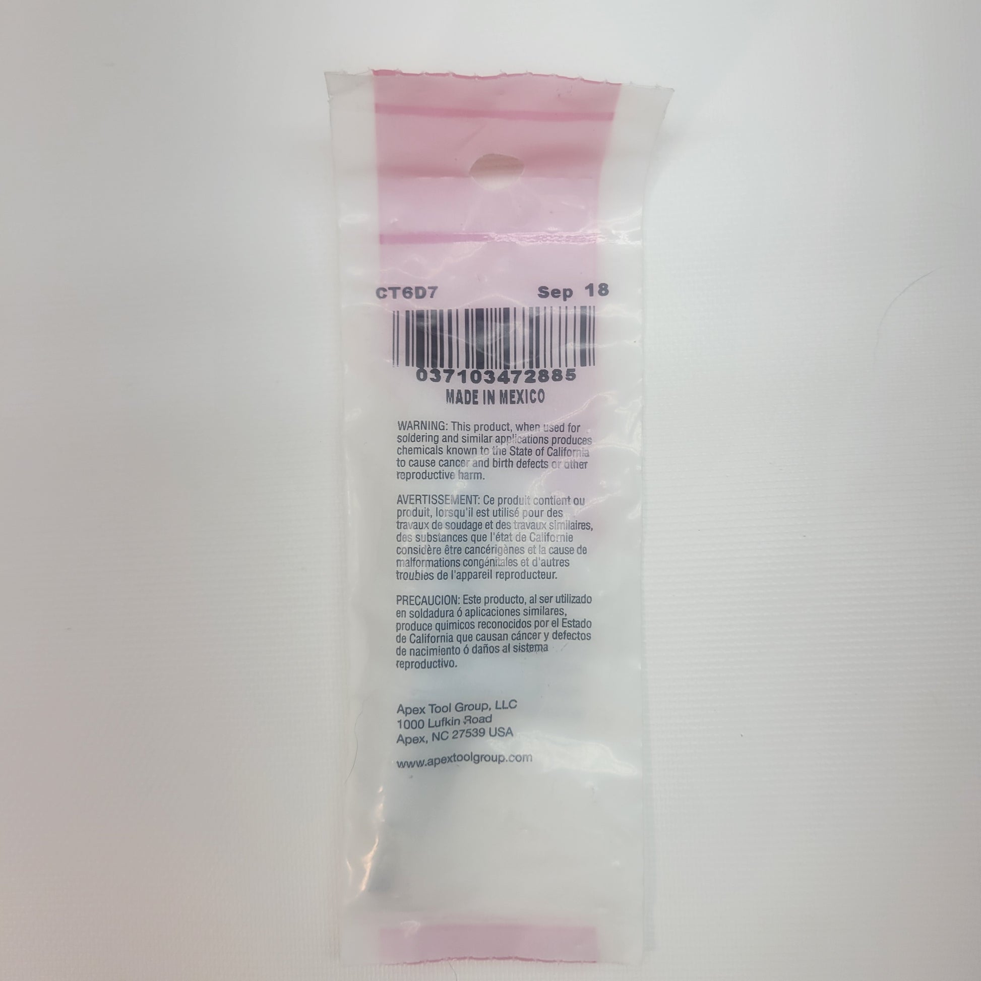 This 3/16" Chisel Tip (Part No. CT6D8) is designed specifically for the Weller W100PG Soldering Iron. With a high temperature rating of 800°F, this tip provides the heat and precision needed for a variety of soldering tasks.