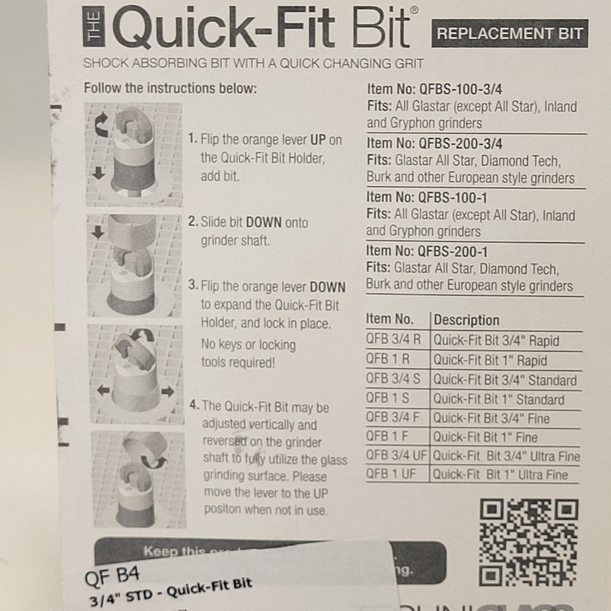 Enhance your grinding experience with the Quick-Fit Sleeve in 3/4 inch Standard Grit, designed for seamless compatibility with all 3/4 inch Quick-Fit Bit Systems. This versatile sleeve offers exceptional performance, making it an essential accessory for both professional and hobbyist glass artists.