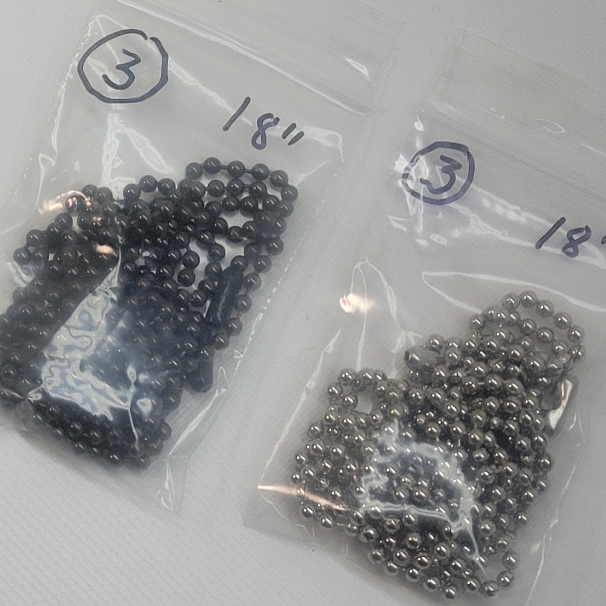 Gun Metal Black Ball Chain Set – 3 Chains with Connectors (18 Inches Each)