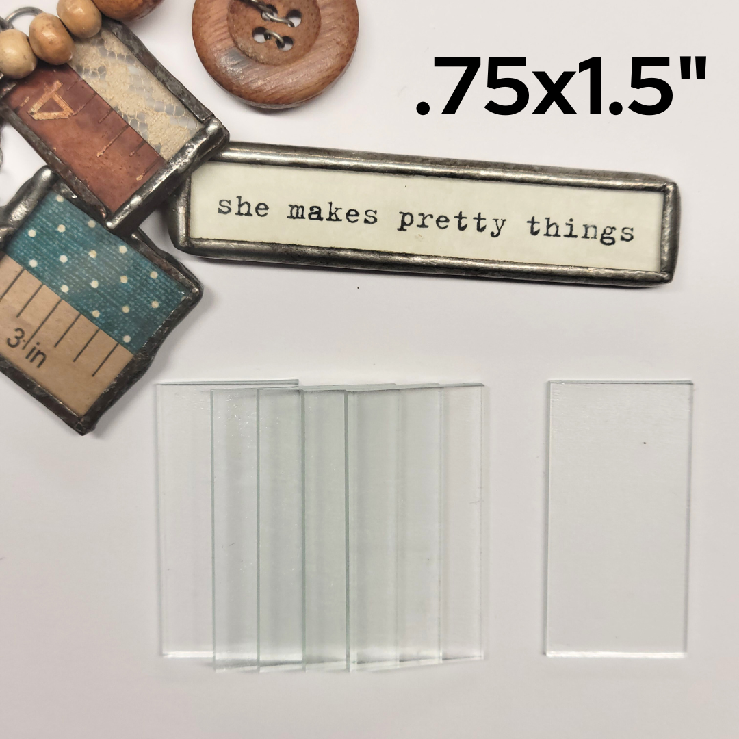 Discover our versatile .75 x 1.5 Inch Flat Glass Rectangles, perfect for a wide range of crafting projects. Sandwich pictures, cloth, flower petals, text/words/names, and more in between 2 pieces of glass. Make your own Assemblage jewelry or soldered art pendants. Crafted with precision, these clear glass rectangles are flat on both sides, making them ideal for various techniques.Product Details:
