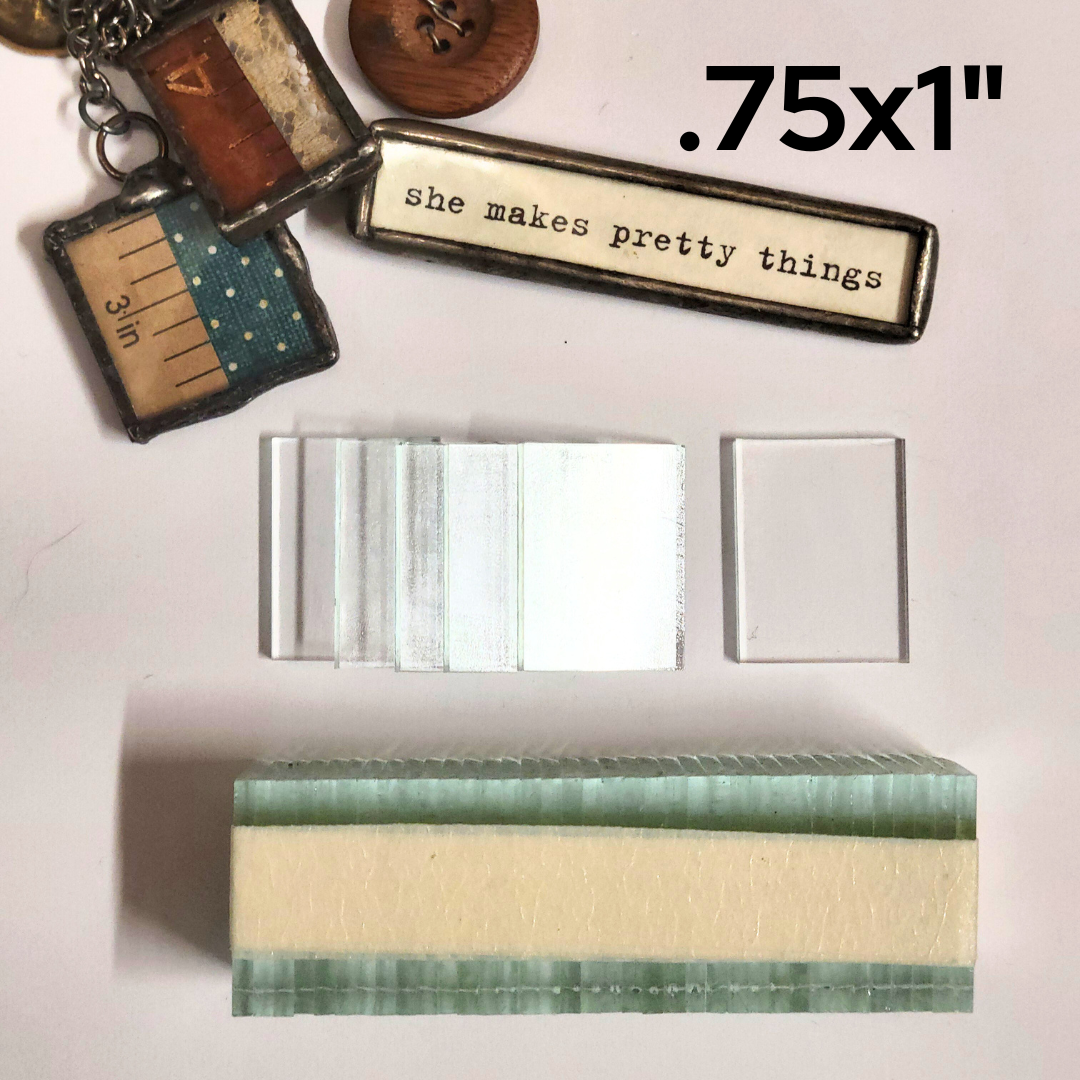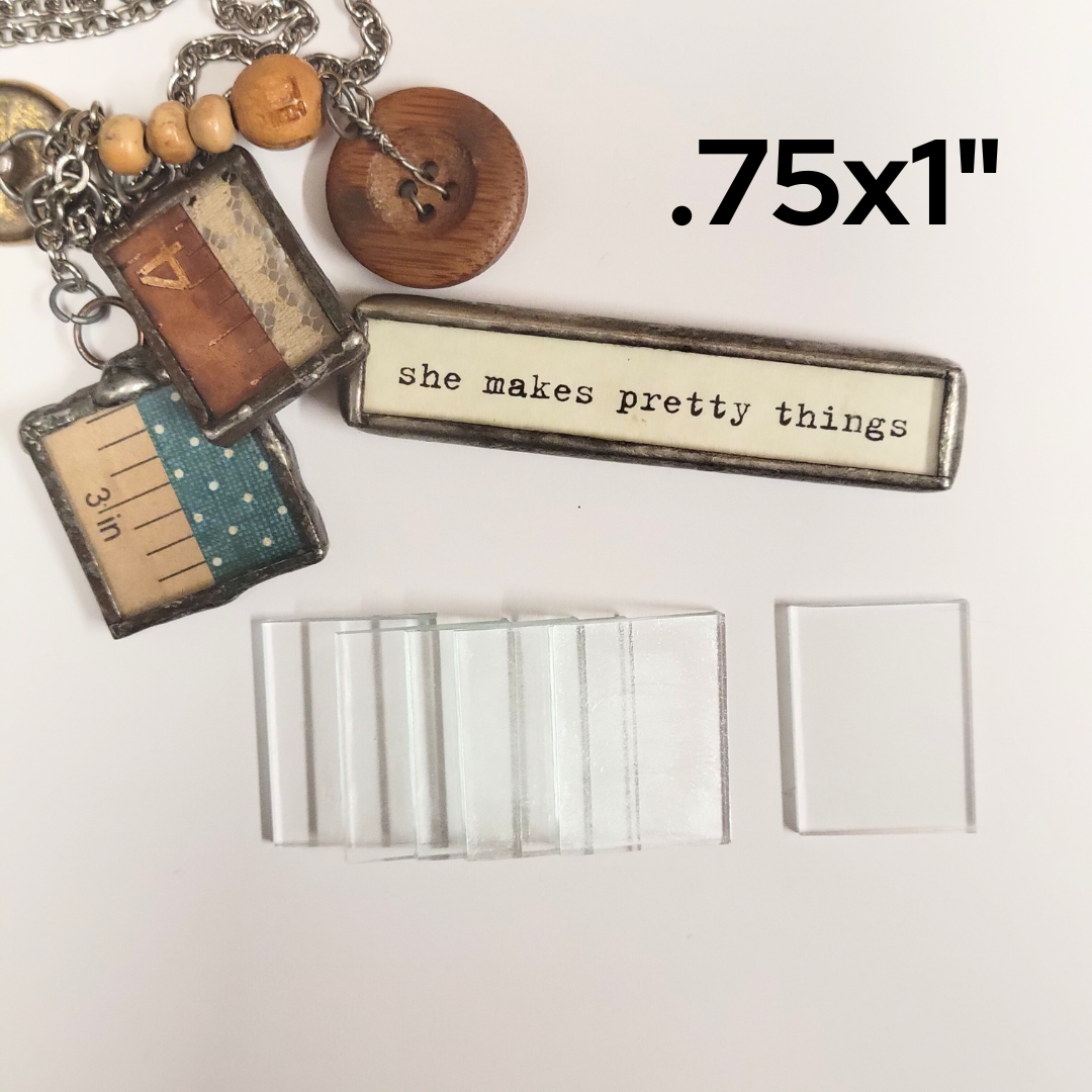 Discover our versatile .75 x 1 Inch Flat Glass Rectangles, perfect for a wide range of crafting projects. Sandwich pictures, cloth, flower petals, text/words/names, and more in between 2 pieces of glass. Make your own Assemblage jewelry or soldered art pendants. Crafted with precision, these clear glass rectangles are flat on both sides, making them ideal for various techniques.Product Details: