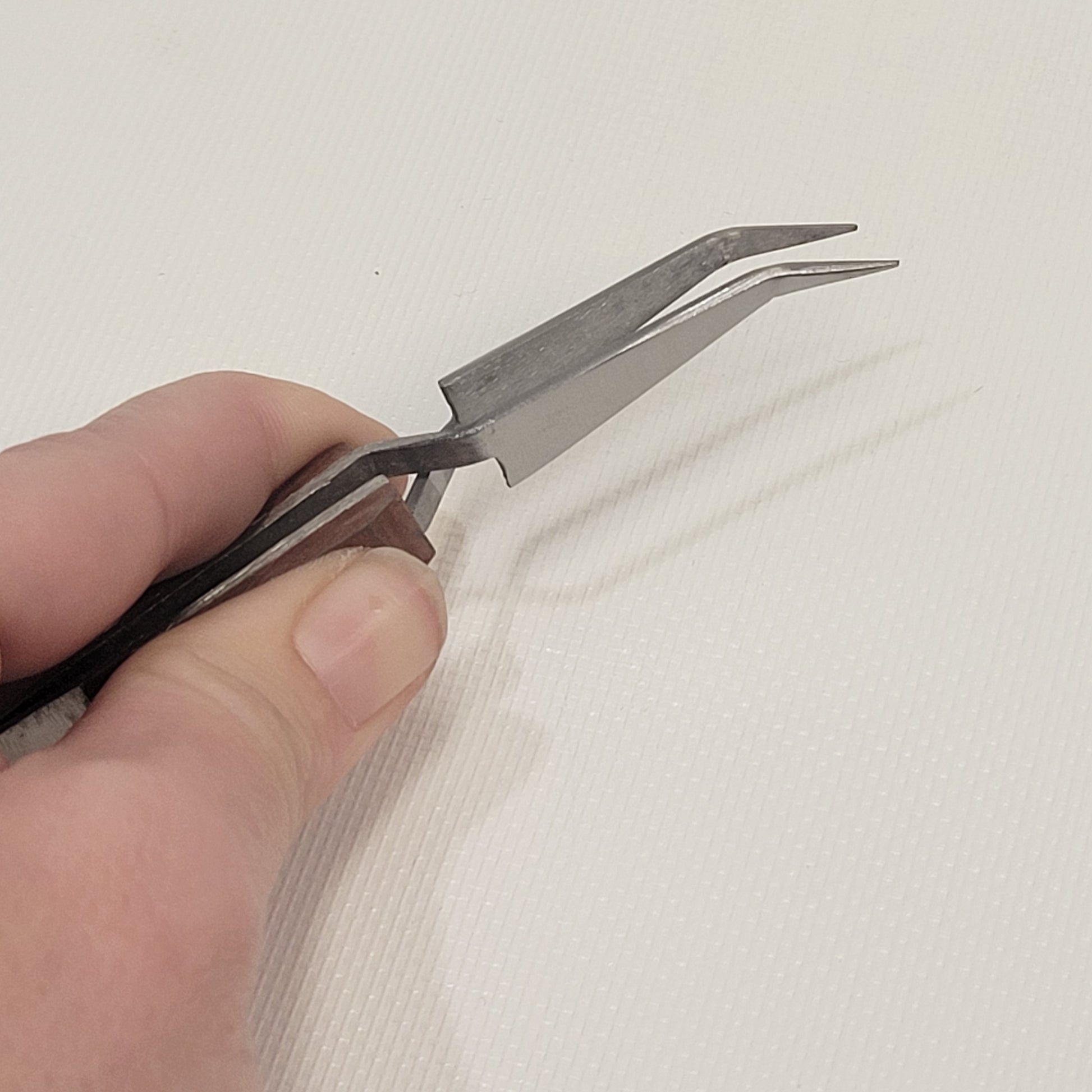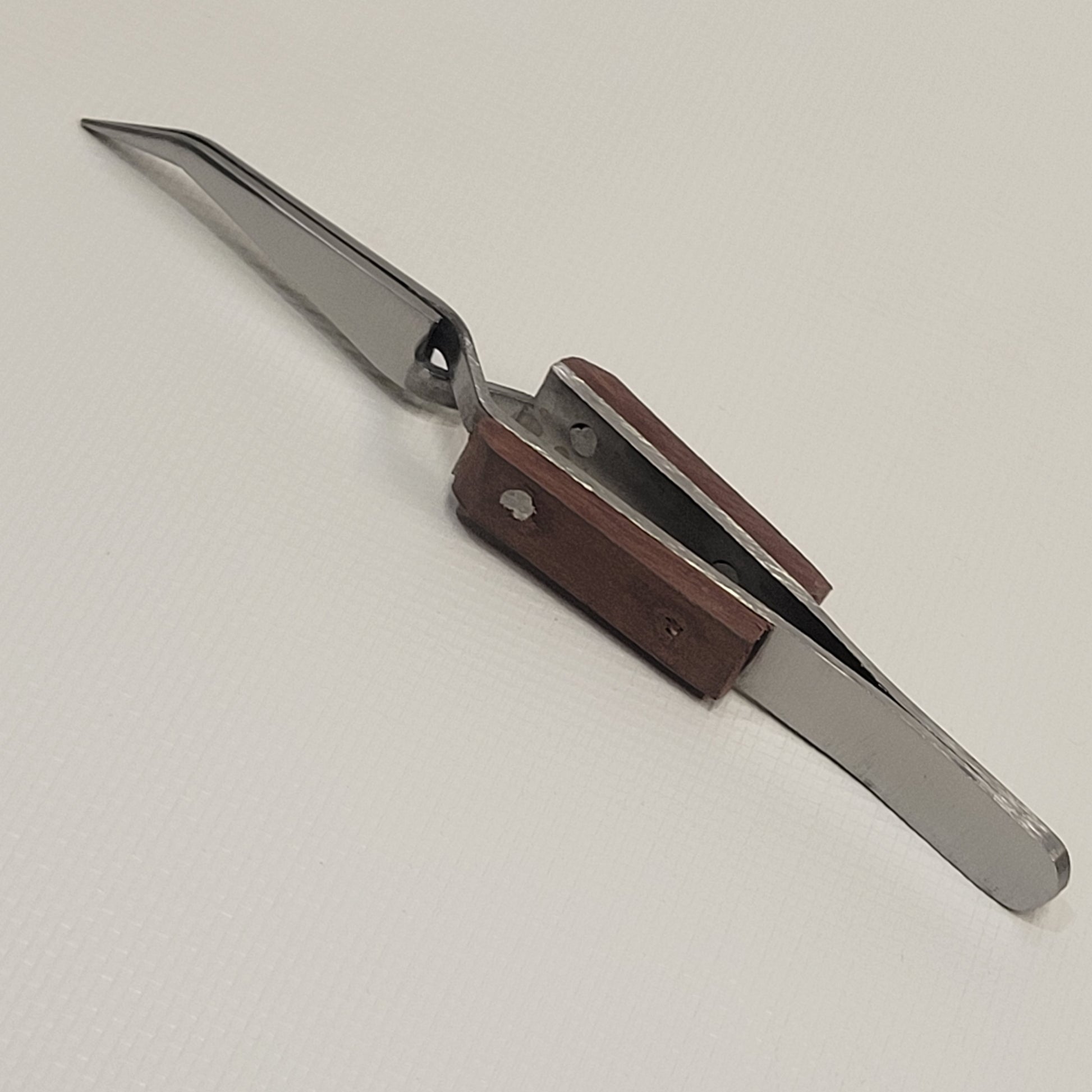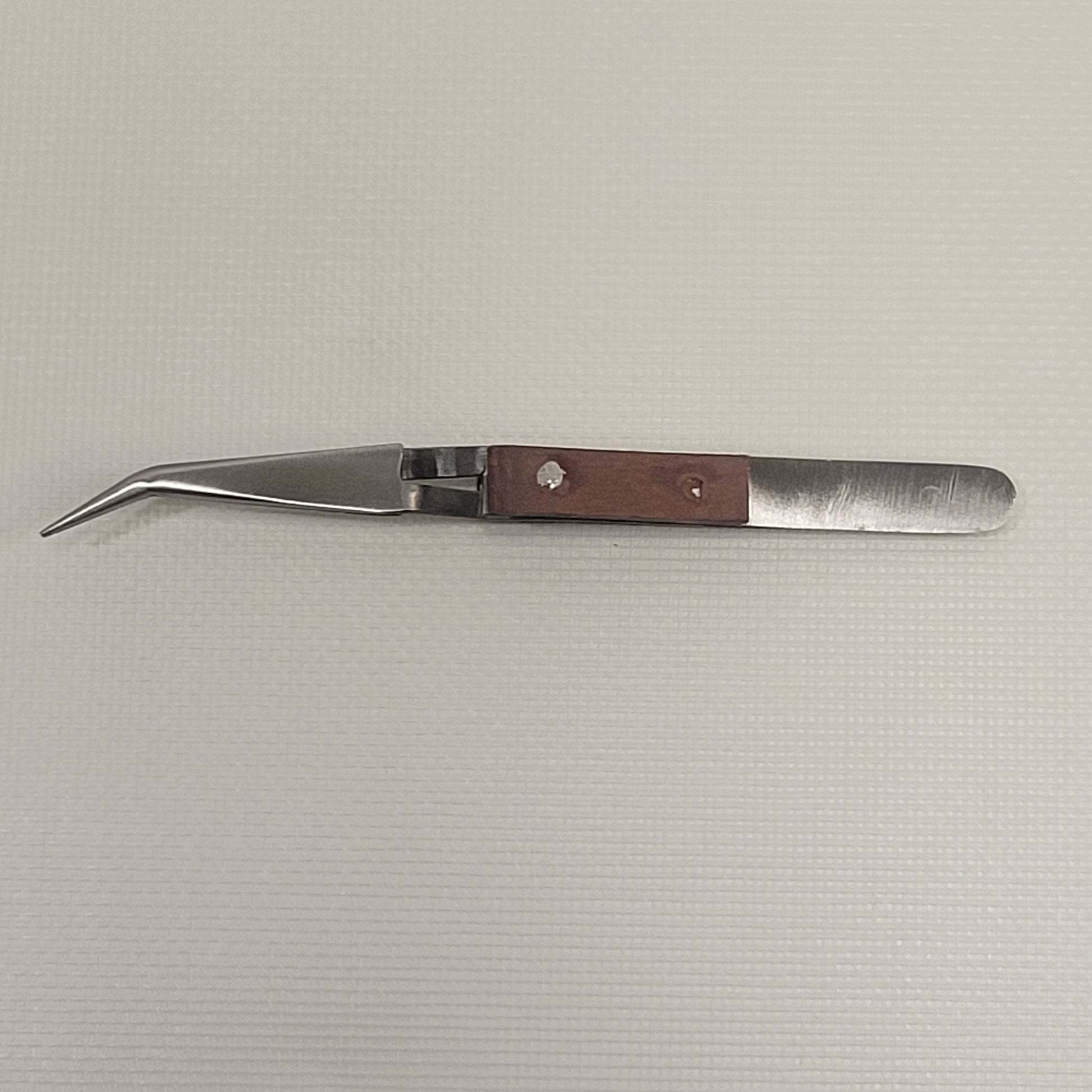 Reverse Clamp Tweezer with Bent End – 4-5/8" Small, Fiber Grip Handle