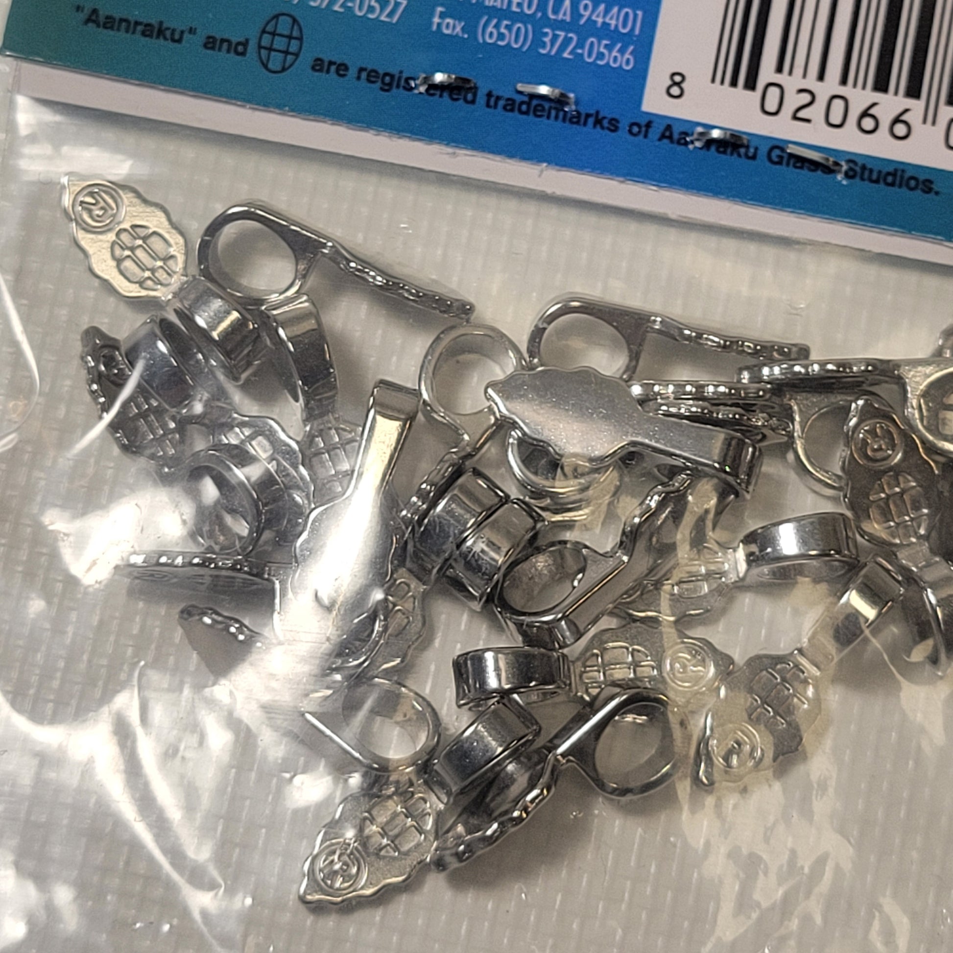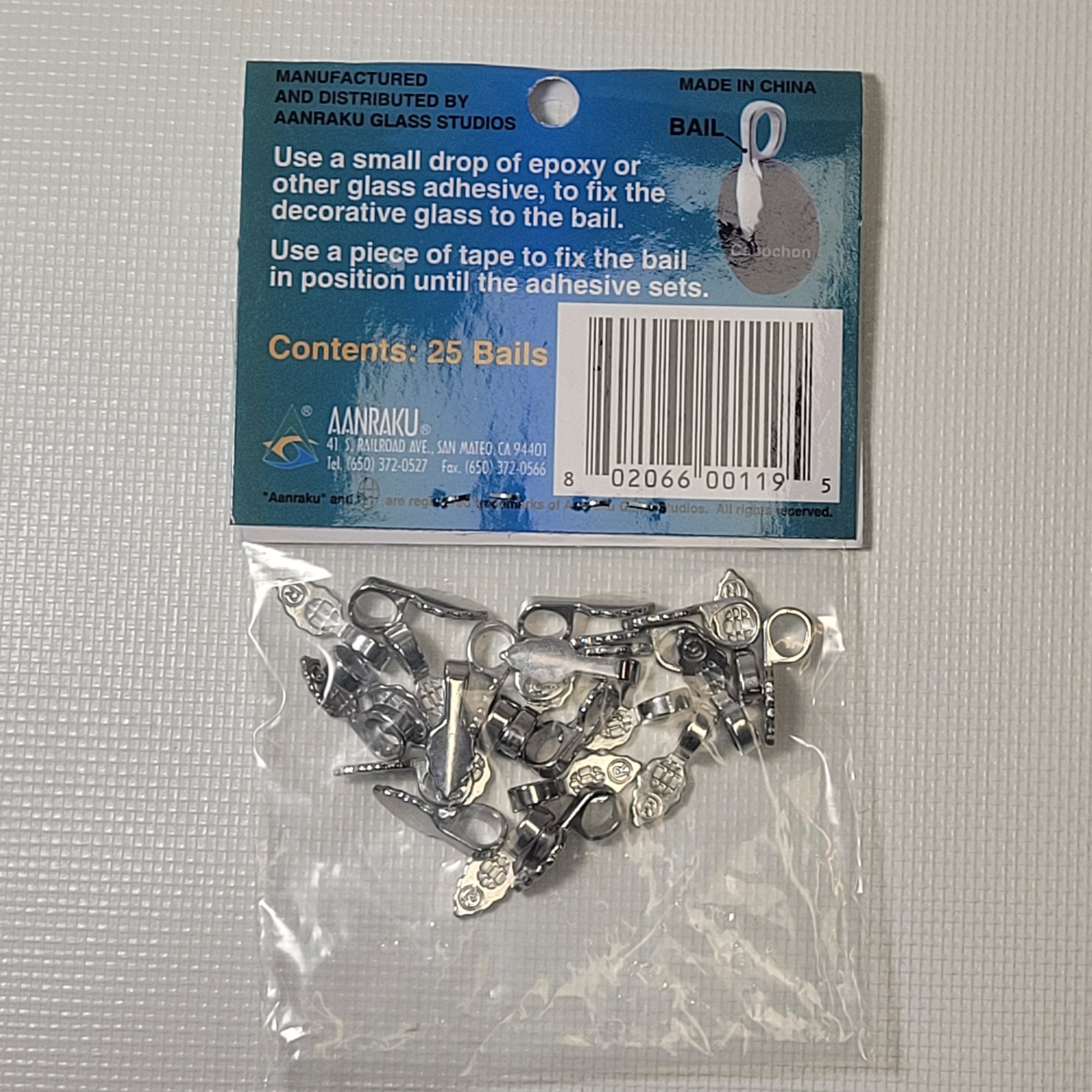 Enhance your glass jewelry creations with these beautifully crafted, nickel-plated leaf-shaped bails by AANRAKU Stained Glass. Designed for easy attachment without obscuring your fused glass pieces, these bails offer a smooth, elegant way to finish your jewelry designs. No need for wire wrapping or drilling holes—simply attach the bail with a small drop of epoxy or another strong glass adhesive like E6000.