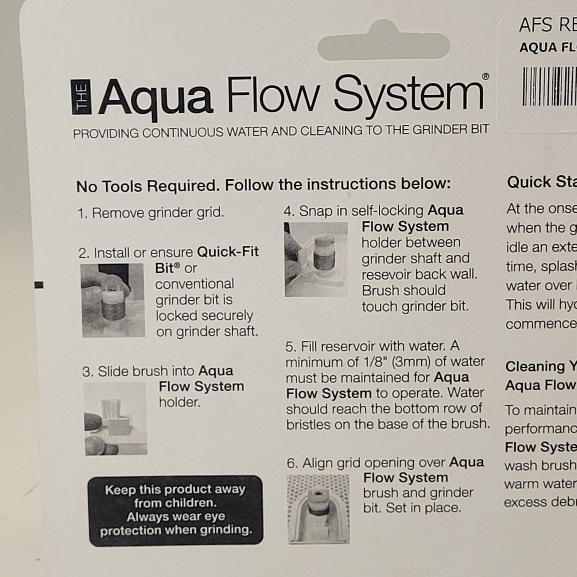 Continuous Water & Cleaning: The Aqua Flow System features micro-tubular brush bristles attached to a durable polymeric holder, delivering consistent water flow while cleaning your grinder head as you work—keeping your workspace clean and efficient.