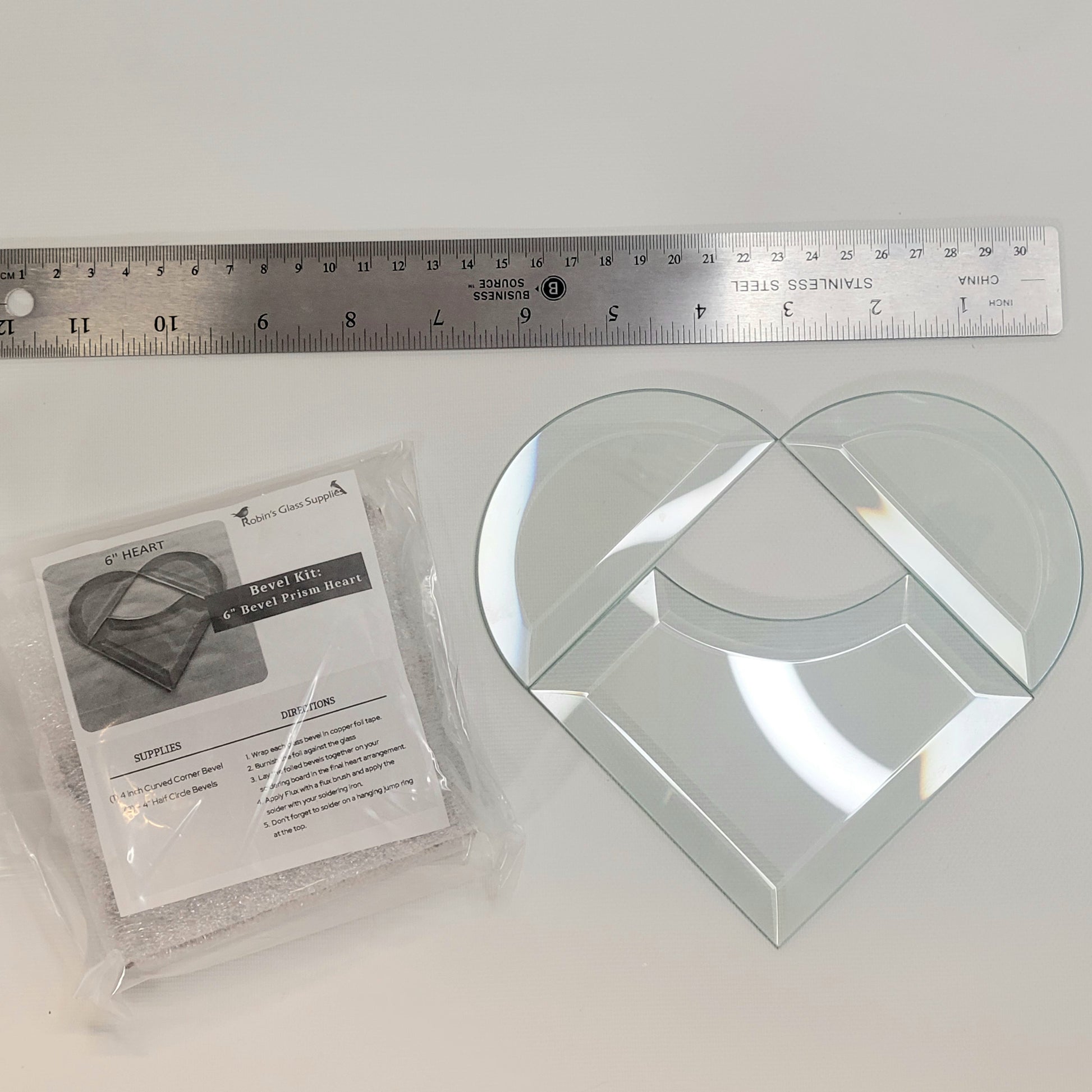 Create a stunning 6" multi-beveled heart with this elegant kit! Perfect for adding a beautiful touch to any stained glass project, this set includes all the bevels you need to craft a charming heart. Simply foil or wrap the pieces in lead, solder them together, and you're done!