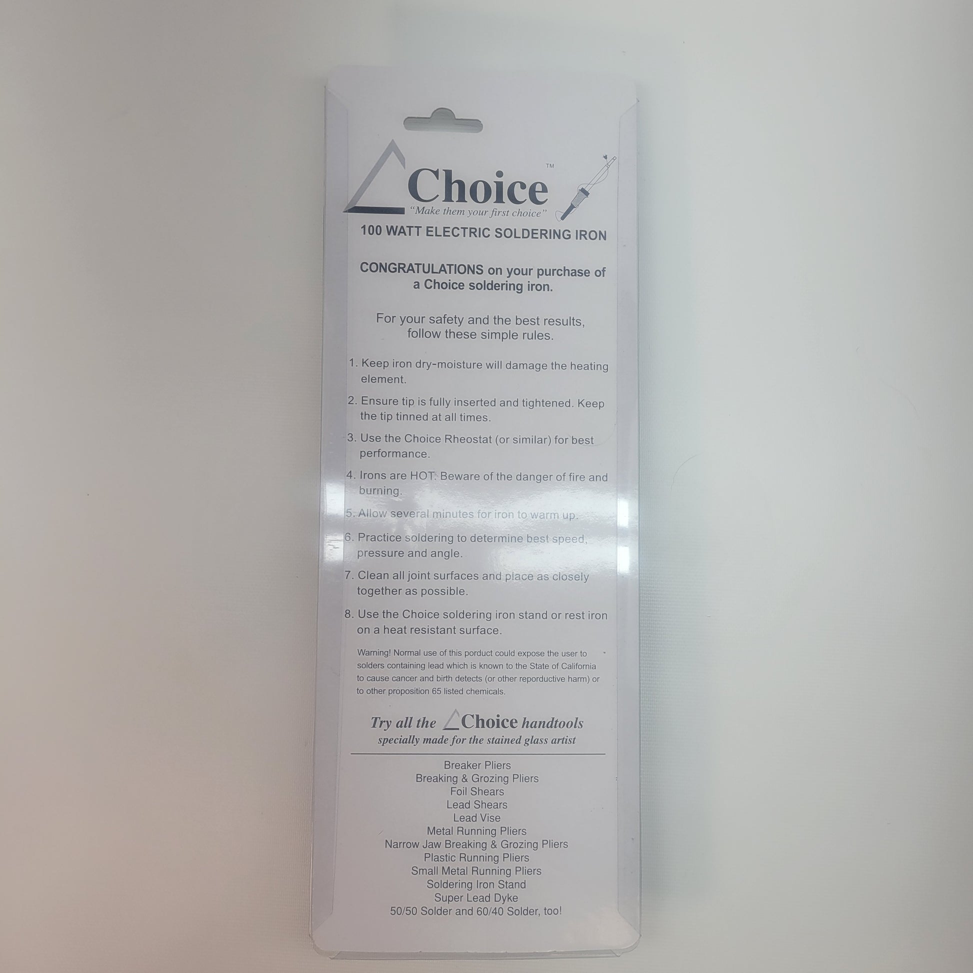 The CHOICE 100 Watt Soldering Iron is an ideal tool for both beginners and experienced artisans looking for reliable, high-performance equipment at an affordable price. Whether you're working on stained glass, jewelry soldering, or other detailed projects, this soldering iron offers precision and safety.