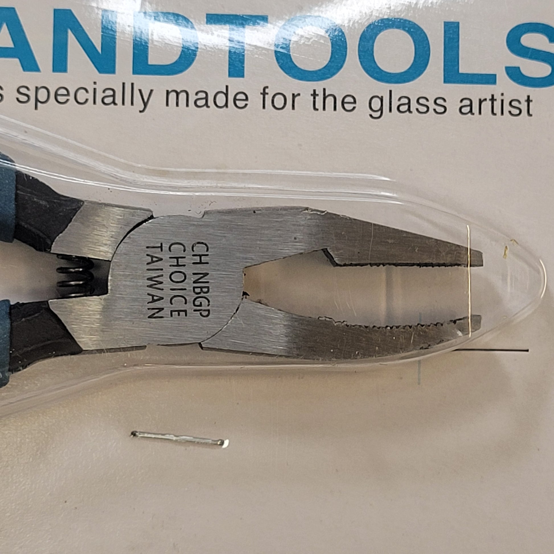 The CHOICE MINI Breaker Grozier - 1/8" Narrow Jaw is a compact and precise tool designed for small breaking jobs. These 6" long pliers feature a 1/8" serrated jaw that allows for careful removal of small pieces of glass that remain after scoring and breaking. Ideal for detailed work, this combo tool combines the functions of both a breaker and a grozier, making it perfect for precision tasks.
