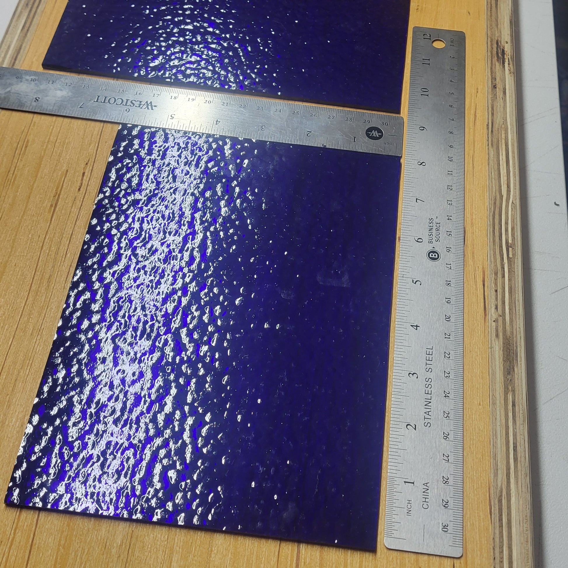 This Cobalt Blue Cathedral Stained Glass by Wissmach features a striking, deep sapphire hue with excellent light transmission. Its rich, luminous blue brings to mind clear twilight skies and classic stained glass windows. With a smooth, transparent finish, it’s a timeless choice for both traditional and contemporary designs. Each sheet measures approximately 6 x 8 inches (with a 1/8" tolerance), perfect for stained glass work, jewelry, mosaics, and decorative panels.