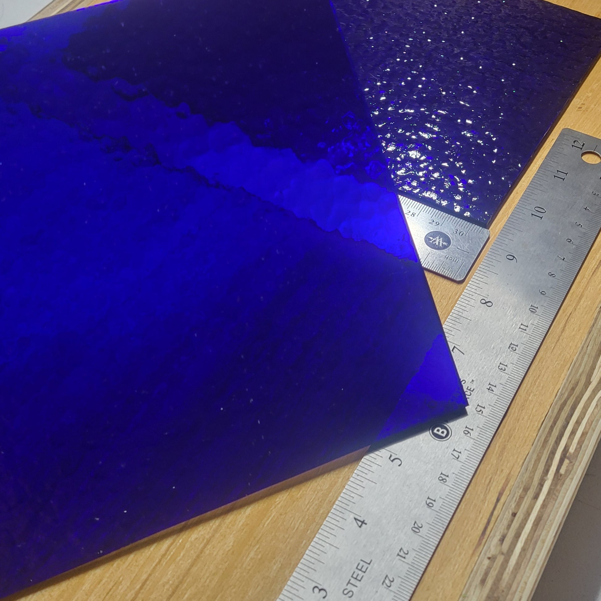 ✅ Cobalt Blue Cathedral – A bold, transparent blue that glows brilliantly when backlit, ideal for light-catching designs.