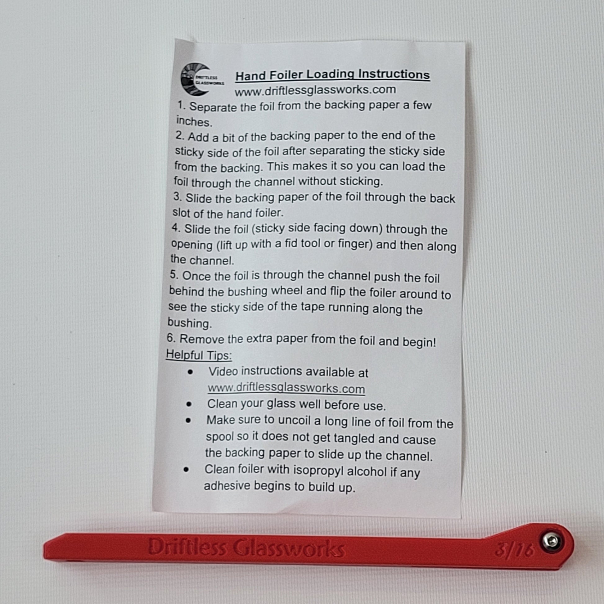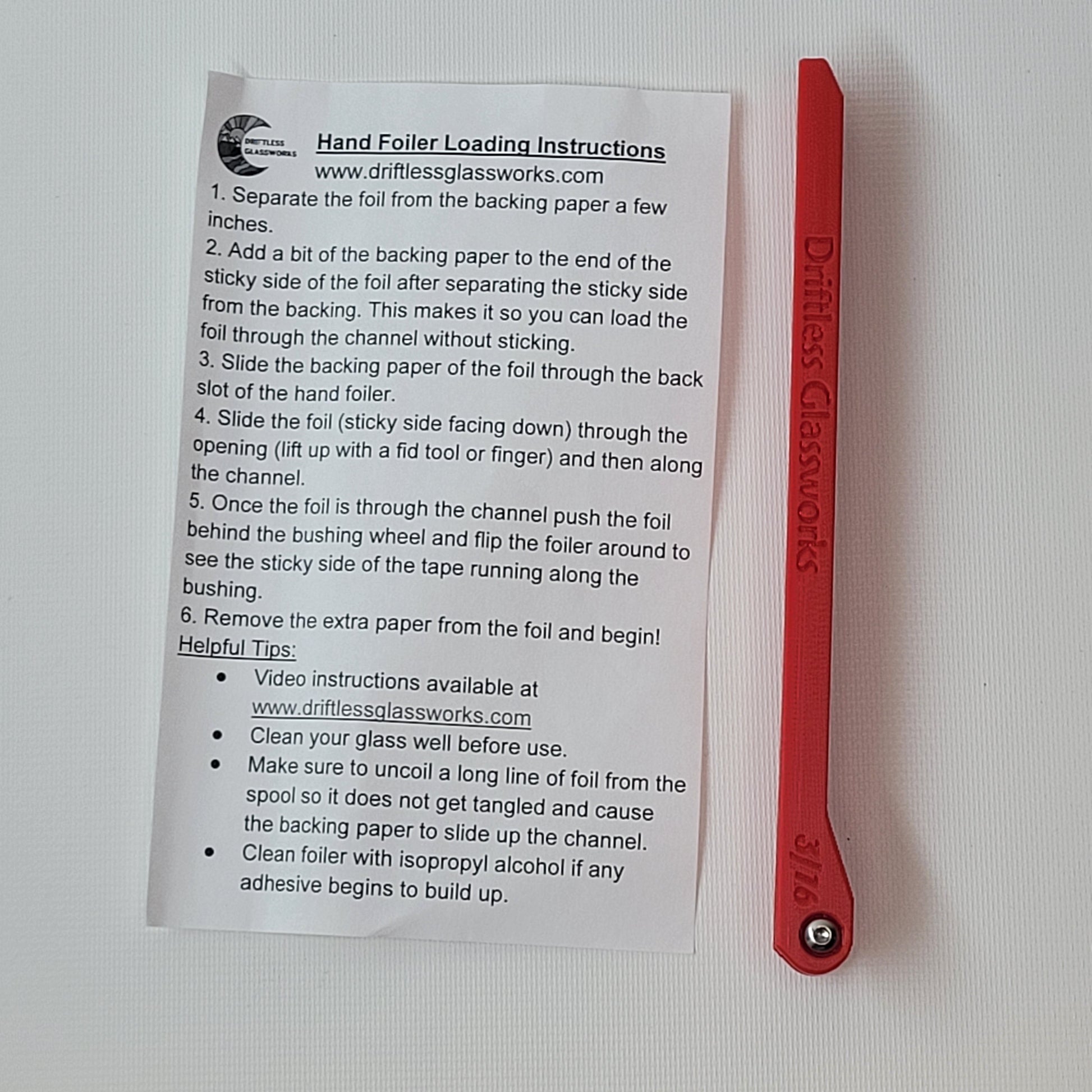 The 3/16" Hand Foiler is an essential tool designed specifically for copper foiling in stained glass applications. Perfectly sized for 3/16" copper foil tape, this handy tool helps ensure a smooth and efficient foiling process, making it easier to apply copper foil precisely around your glass pieces.