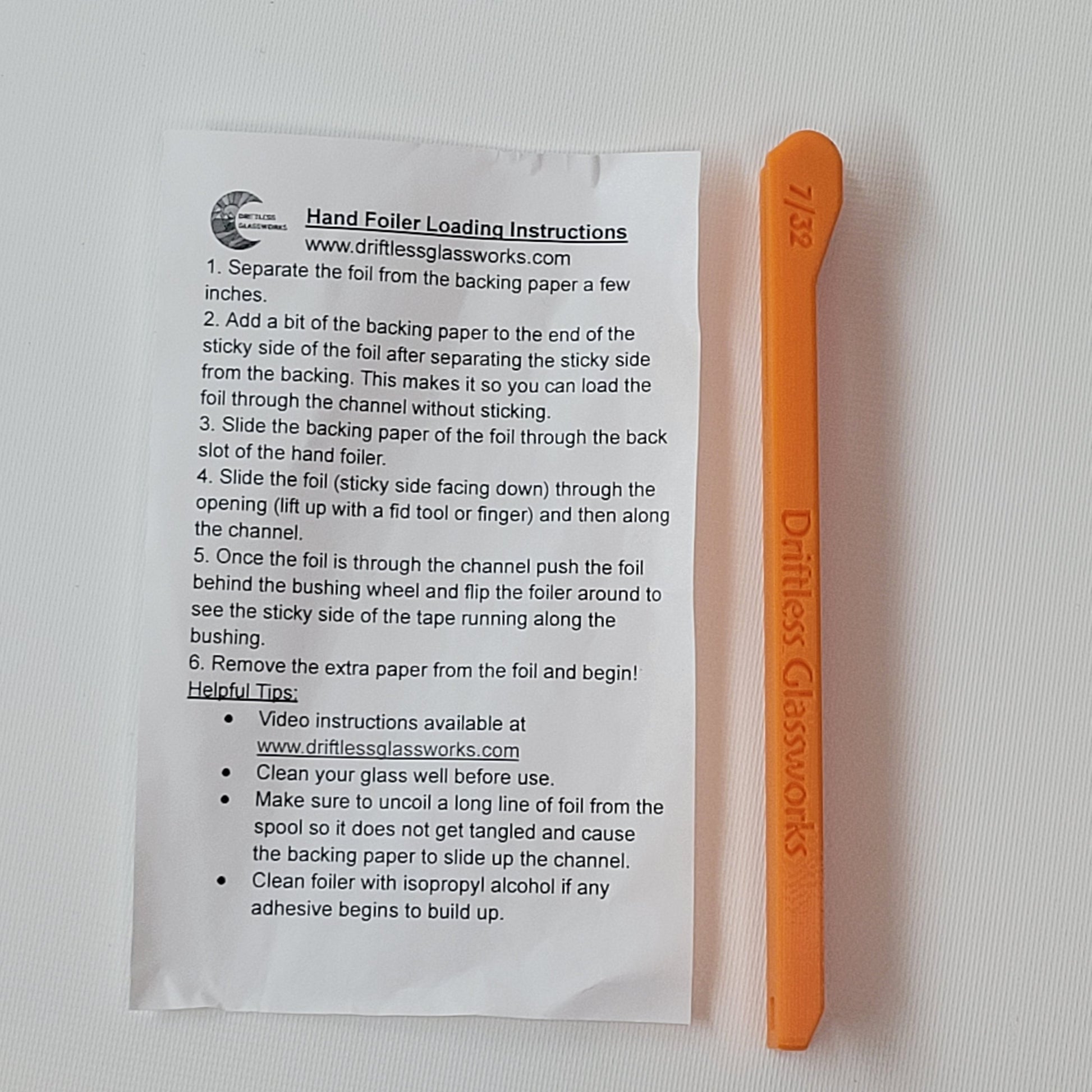 The 7/32" Hand Foiler is a specialized tool designed for stained glass artists working with 7/32" copper foil tape. Perfect for creating precise, even foil applications on your glass pieces, this hand foiler ensures smooth, consistent coverage for a professional finish every time.