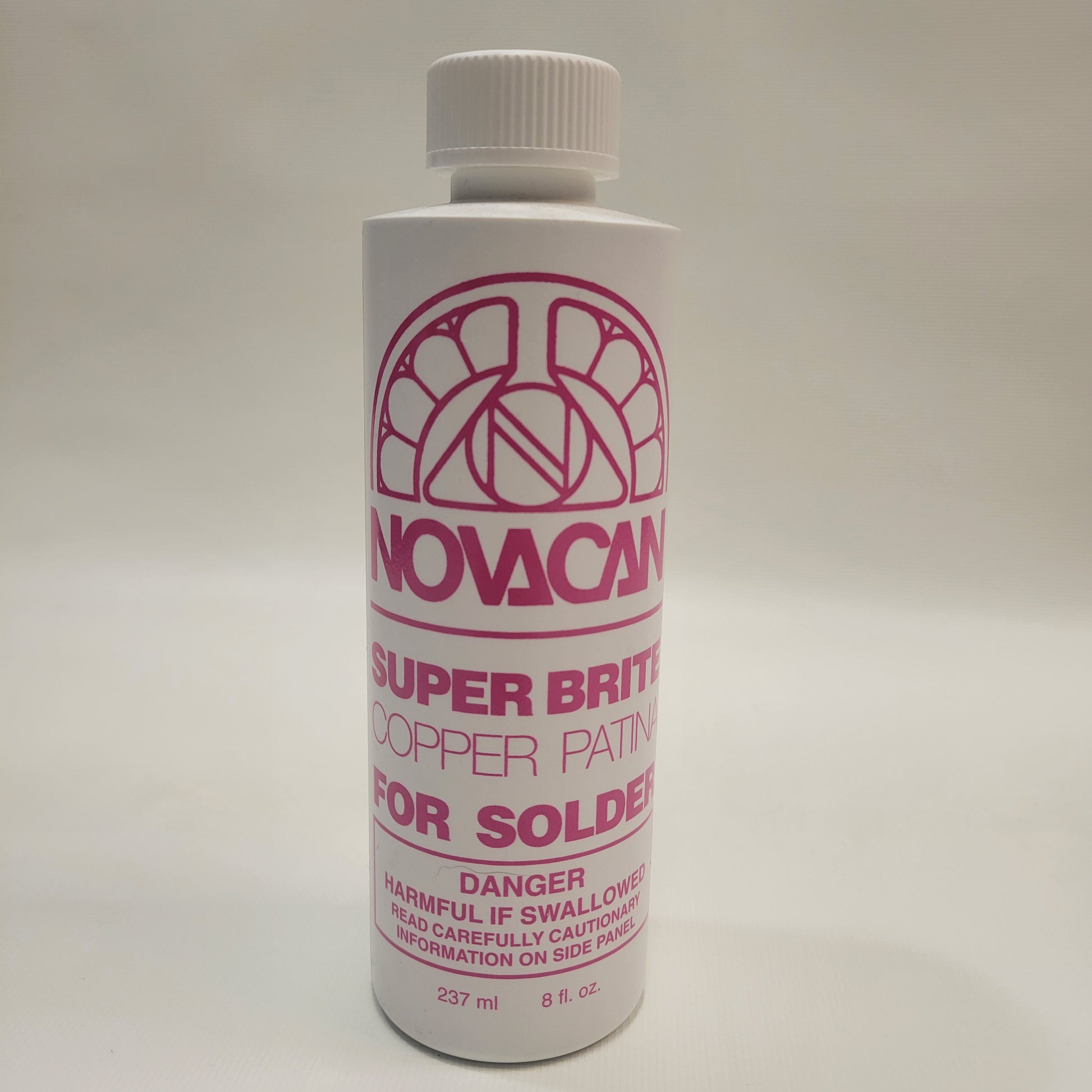 The Novacan Copper Patina is designed to transform silver solder into a rich copper color, adding warmth and a unique look to your stained glass projects. For the best results, follow these steps:
