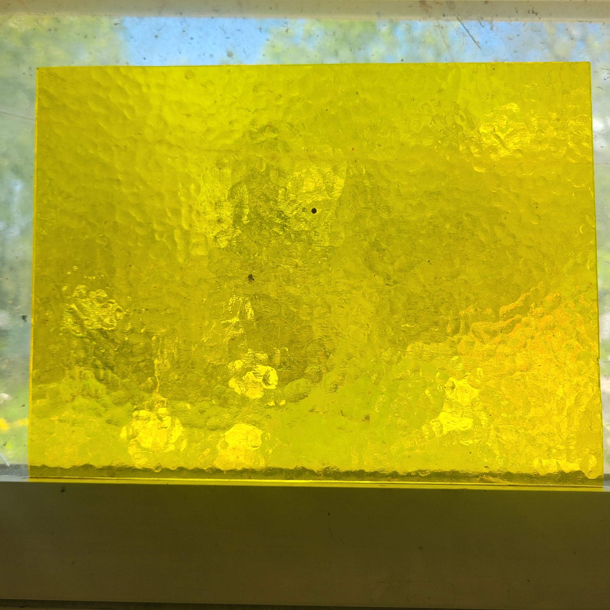 This Dandelion – Classic Yellow Stained Glass by Wissmach features a bright and cheerful golden hue that brings warmth and light to any project. With its rich, translucent yellow tone, this glass captures the essence of sunshine and spring blooms. Each sheet measures 6 x 8 inches (approximate, with a 1/8" tolerance), making it perfect for stained glass art, jewelry pieces, panels, and mosaic work.