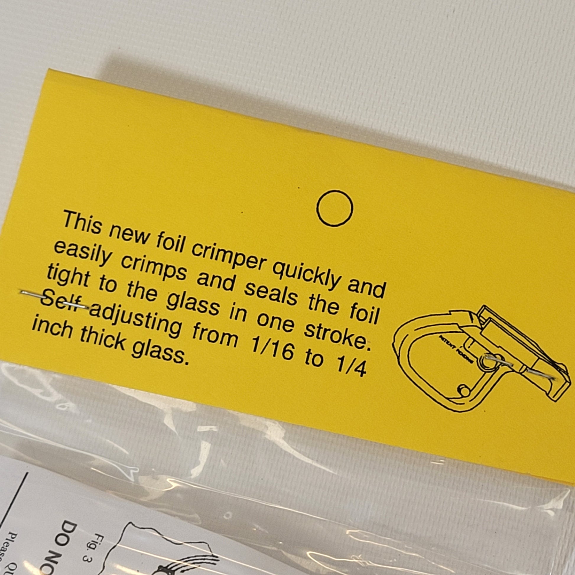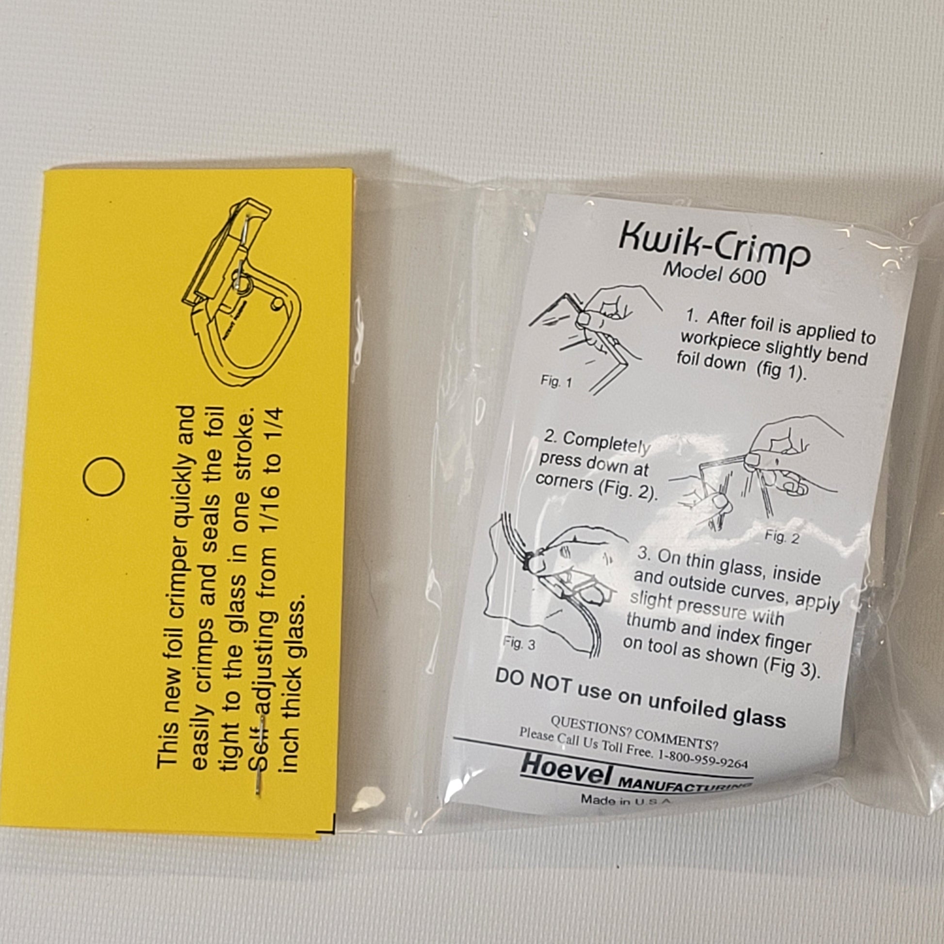 - Easy to Use: After foiling your glass, simply push down gently on the foil edges, crunch the corners, and slide the piece through the Kwik-Crimp’s fingers.