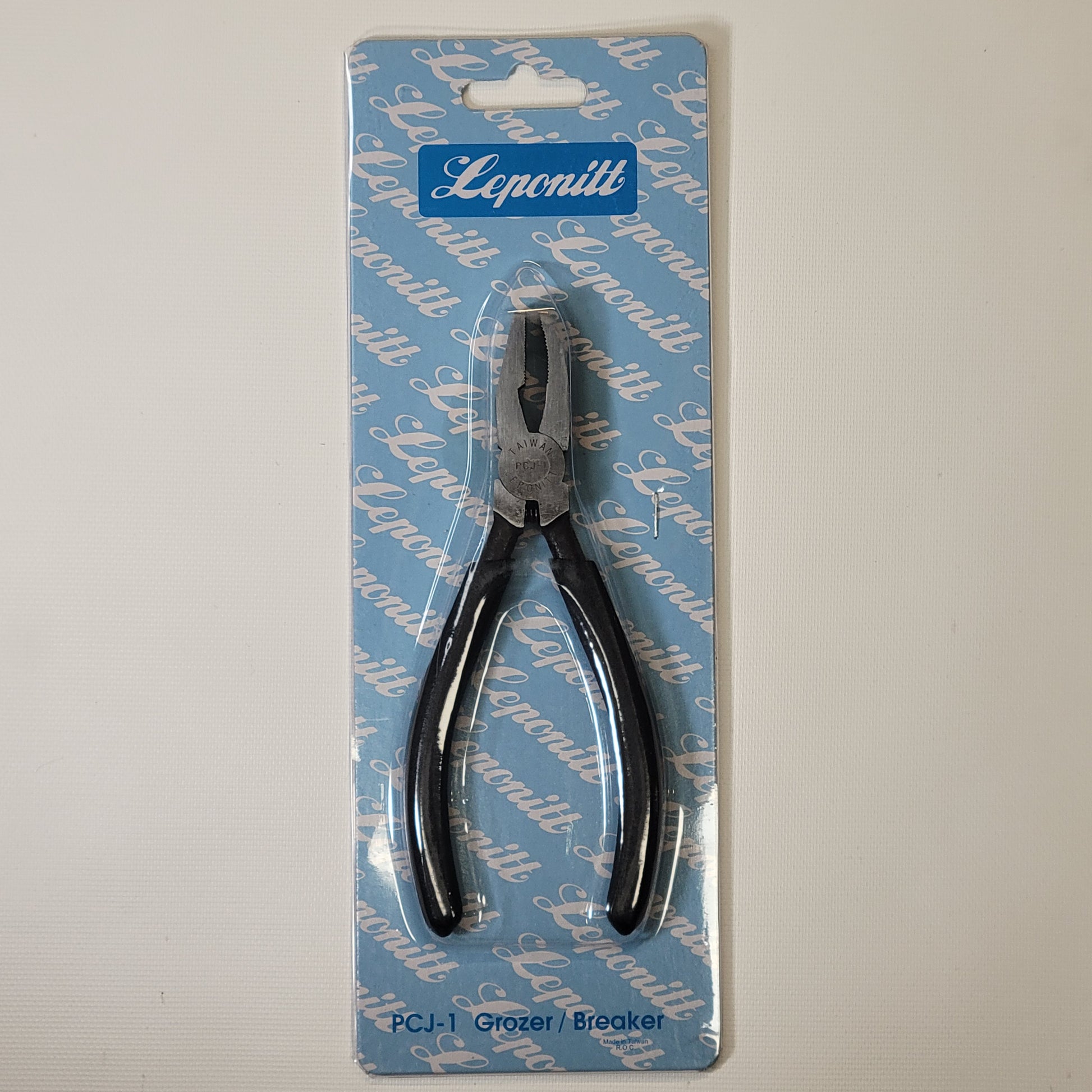 The Leponitt Combo Breaker Grozier Pliers are an essential tool for any stained glass or mosaic artist. Made from durable, drop-forged steel with a sleek satin finish, these high-quality pliers ensure long-lasting performance for all your glass-breaking and shaping needs. Featuring dual-purpose jaws, the flat jaw is perfect for breaking glass along score lines, while the curved jaw is designed for grozing, allowing you to shape and smooth edges with ease. Both jaws are serrated to provide a secure grip on glass, preventing slips during use. The spring-loaded design reduces hand strain, making it easier to work for longer periods. With comfortable, vinyl-dipped handles, you'll have a secure grip and enhanced control during intricate tasks. Measuring 6 inches, these pliers offer precision and versatility, making them ideal for artists working with glass and mosaics. Whether you’re breaking large sheets of glass or fine-tuning edges, these pliers provide the clean, controlled results you need.