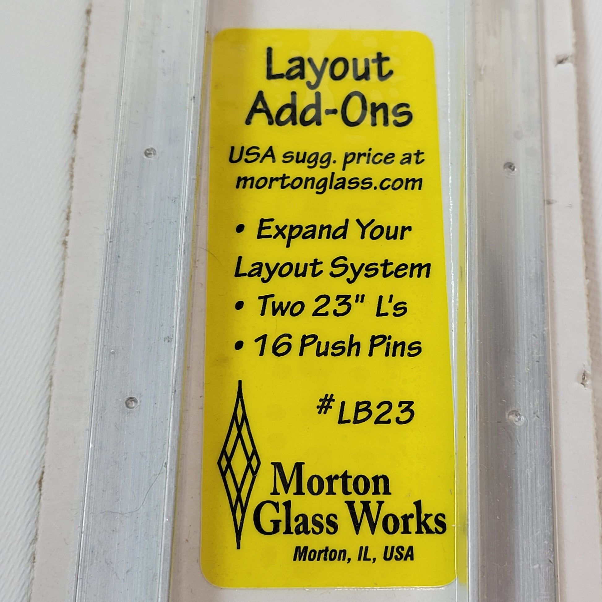 Expand your Morton Layout Block System with this 23" add-on set, designed to replace traditional wood strips and horseshoe nails for a more precise and efficient glass layout.