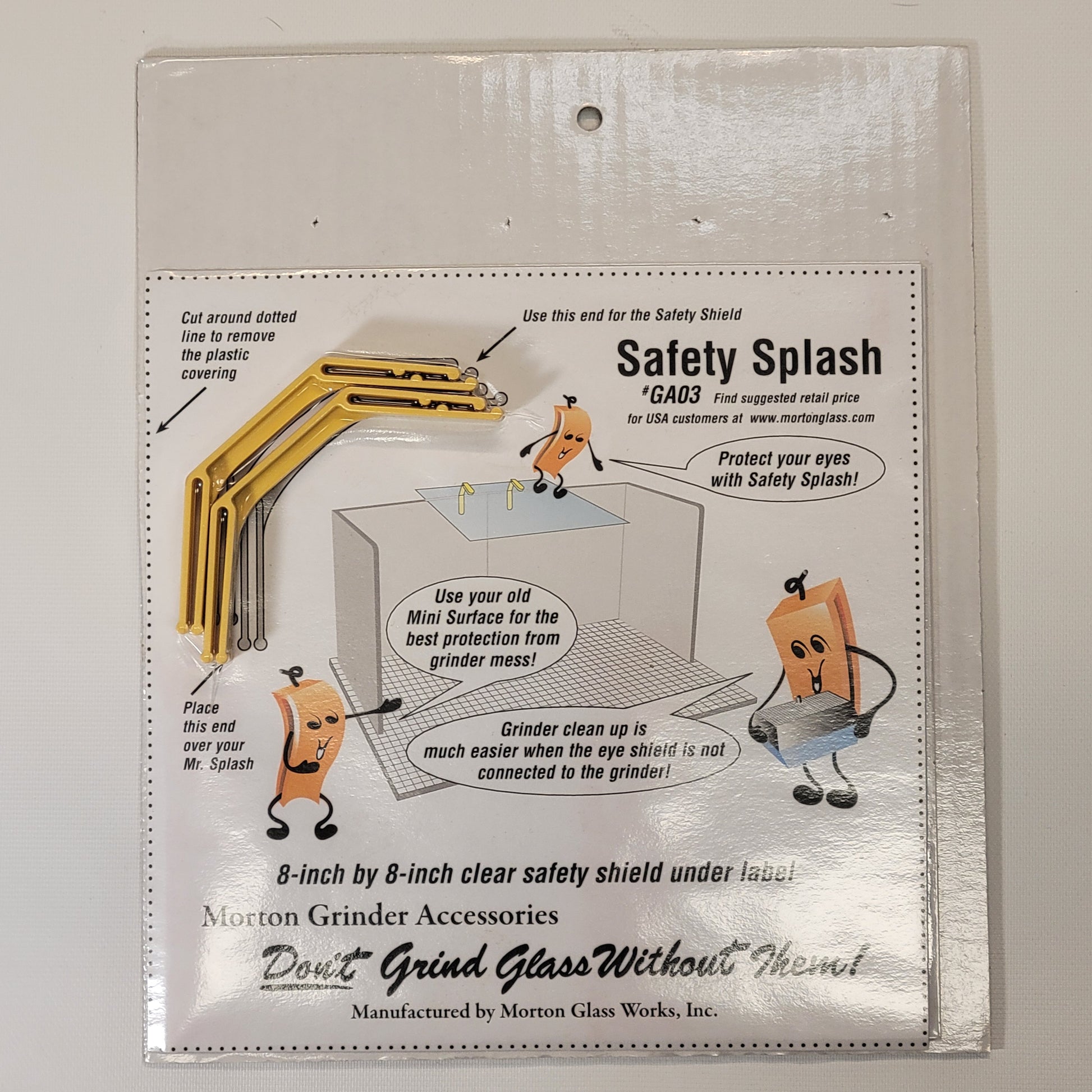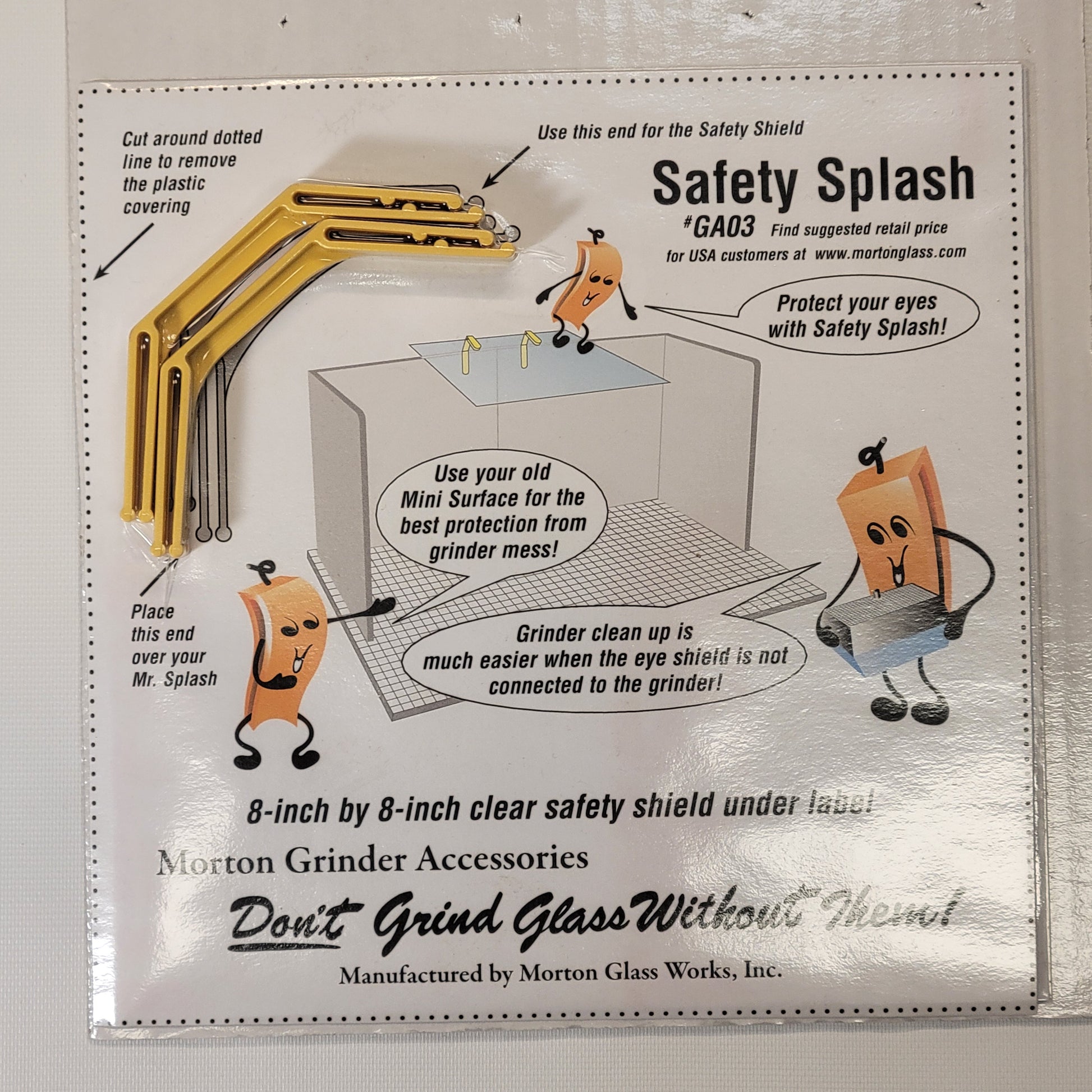 Enhance your safety while working on your glass projects with the Morton Safety Splash 8 x 8 Clear Shield. This durable, clear shield easily clips onto the Mr. Splash Guard (sold separately) to provide an additional layer of protection from water spray and grinding debris. Perfect for keeping your work area clean and your face safe, this shield is a must-have accessory for any glass artist using a grinder.