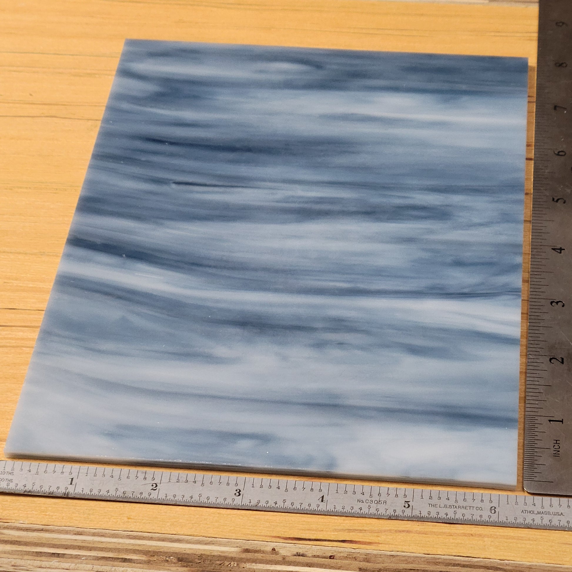 MOONSTONE Steel Blue Gray White – Wissmach Glass – 2 Sheets (6"x8")