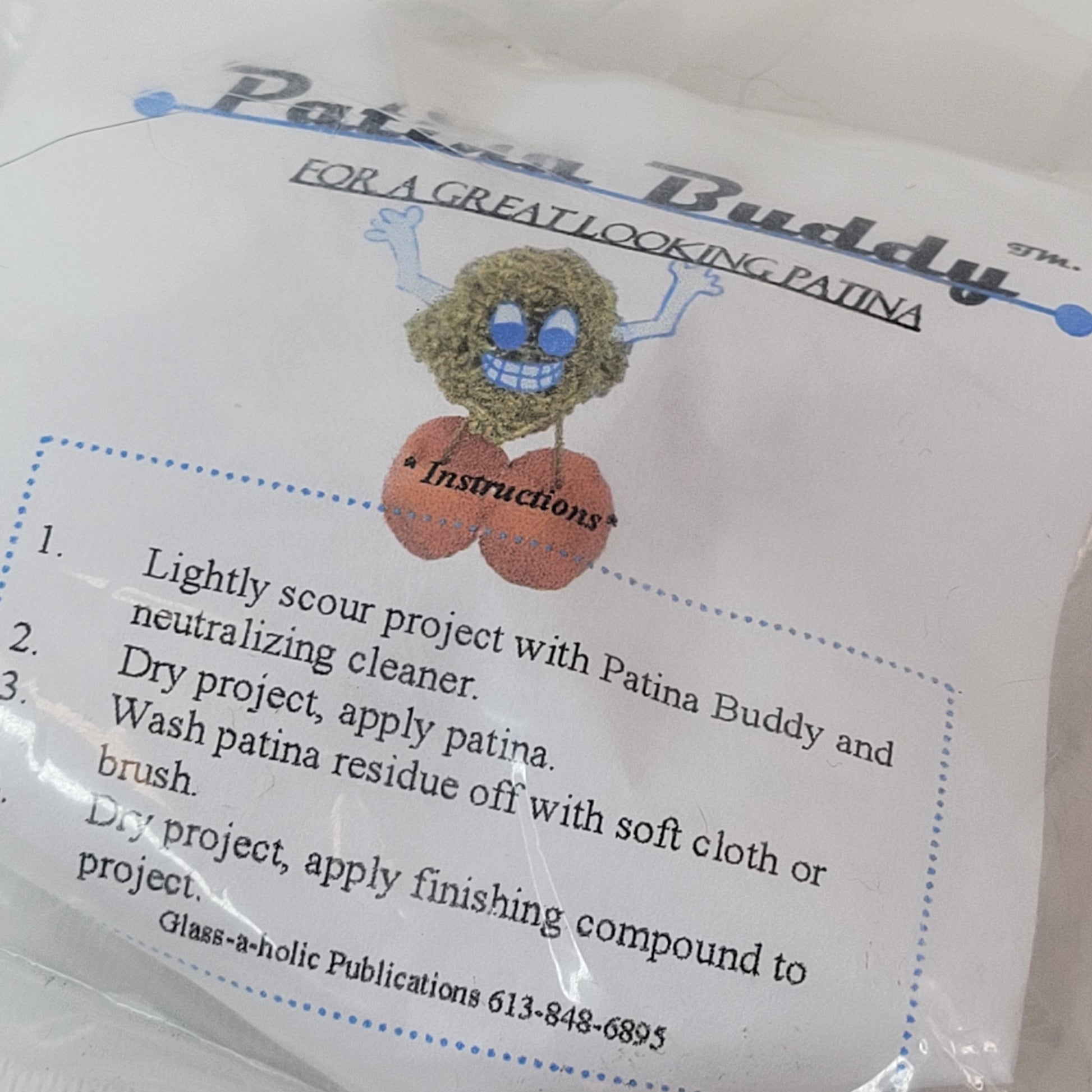 Original Patina Buddy (The Cure to Your Patina Problems) is the perfect tool for polishing solder seams and preparing metal surfaces for patina application. Made from pure brass wool, this scrubber effectively removes unwanted oxidation and flux residue without the issues that come with using steel wool. Unlike steel wool, Patina Buddy won't break off or rust under solder seams, ensuring a clean, smooth finish every time.