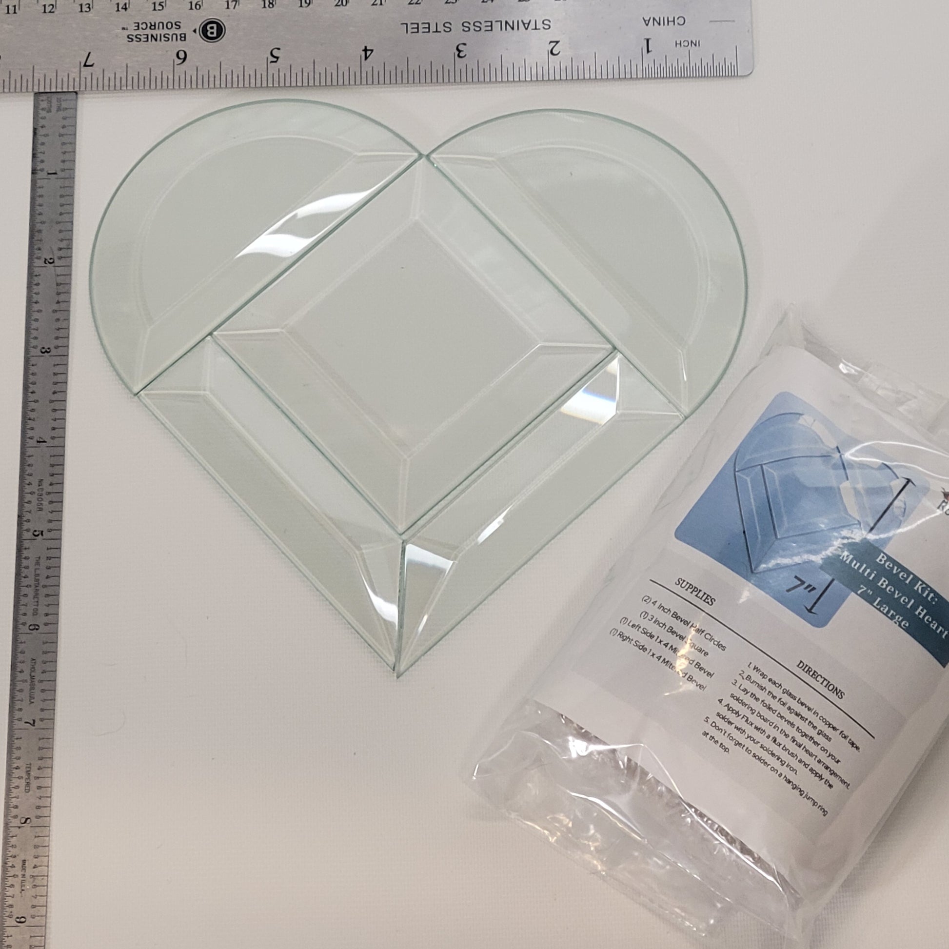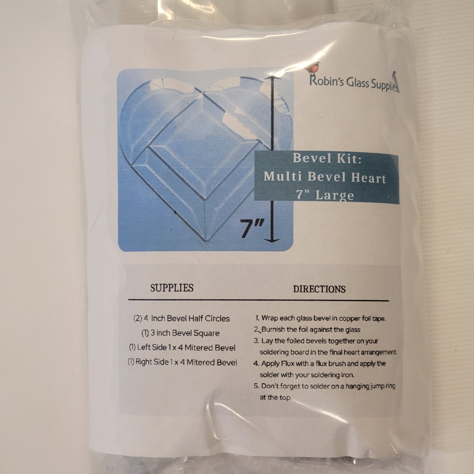 Create a beautiful 7" multi-beveled heart with this charming kit! Designed to add sparkle and depth to your stained glass projects, this kit includes all the bevels needed to form a stunning, multi-dimensional heart. Simply wrap the pieces in foil or lead, solder them together, and enjoy the results!