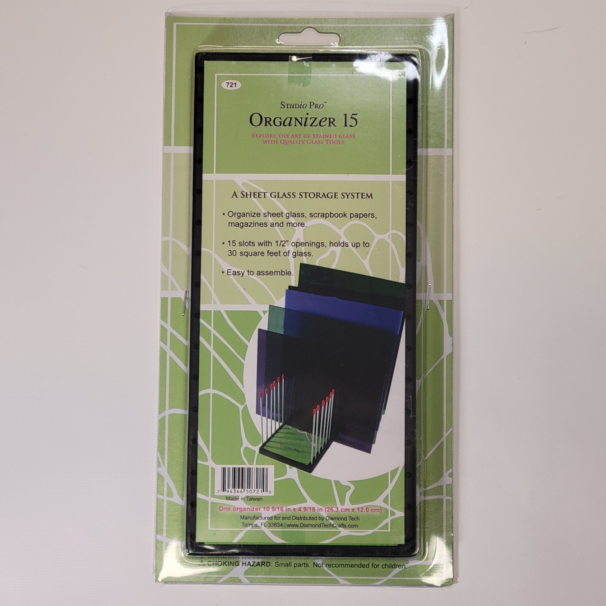 Keep your glass projects neat and organized with the Studio Pro Glass Caddy! This sturdy 15-slot organizer features 1/2" openings and can hold up to 32 square feet of glass, making it perfect for your studio or workspace.