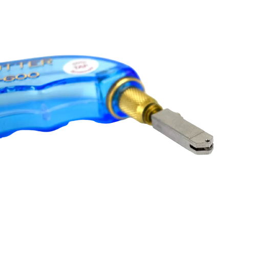 The Toyo Pistol Grip Cutter is specially crafted for cutting thick glass, making it perfect for plate glass or tiles ranging from 1/4" to 3/4" thick. It’s equipped with Toyo’s renowned 140° Tap Technology cutting wheel, which applies a deeper, cleaner score with minimal flaring compared to traditional wheels. The tap wheel requires less pressure for consistent scoring, delivering smoother, more precise cuts while extending the cutter's life.