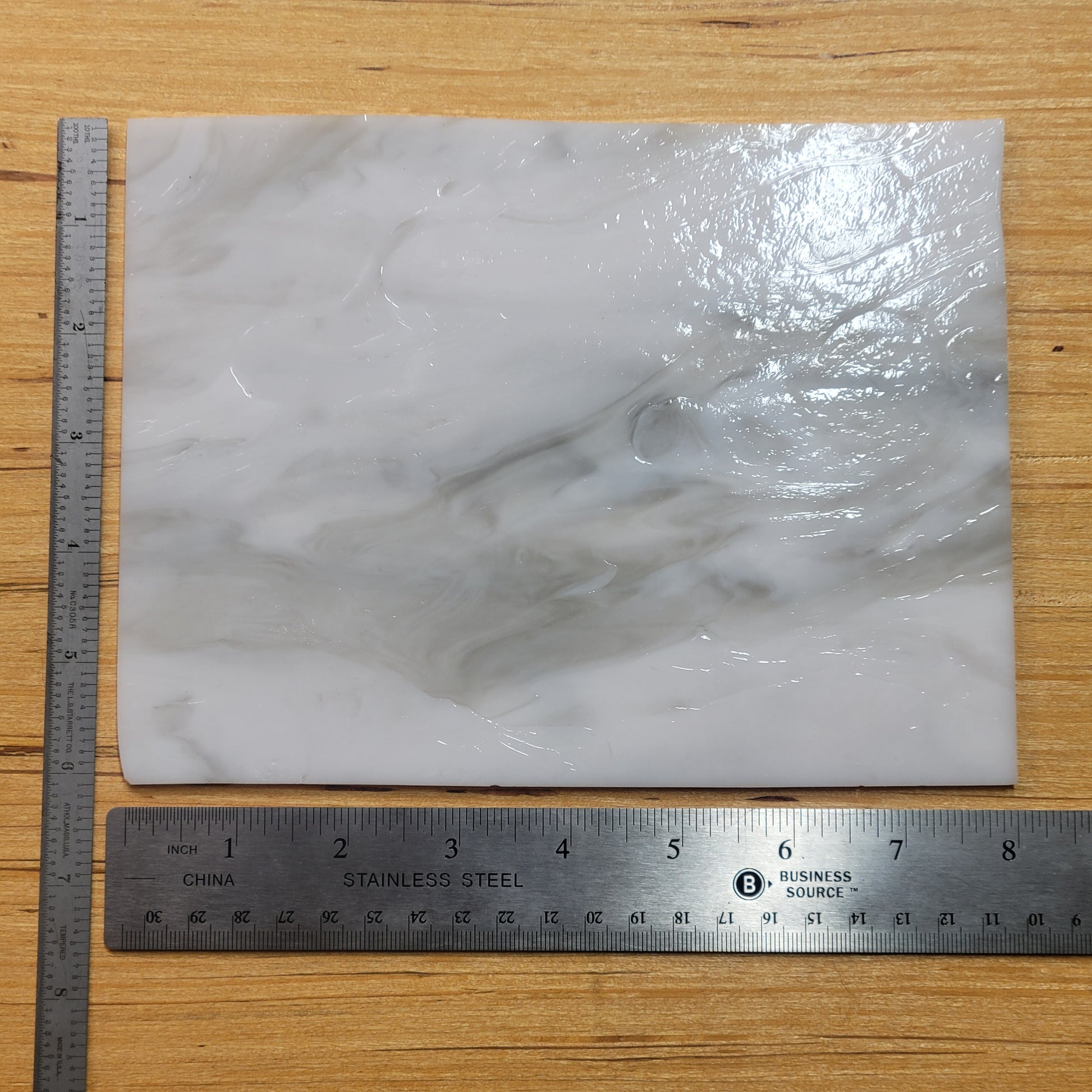 This Moon Opal with Gray Wispy Stained Glass by Wissmach features a soft opalescent base with delicate gray wisps flowing throughout, creating a dreamy, atmospheric effect. Each sheet measures 6 x 8 inches (approximate, with a 1/8" tolerance), making it ideal for stained glass projects, jewelry making, mosaics, panels, and more.